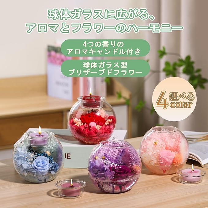 プリザーブドフラワー アロマキャンドルスタンド 誕生日プレゼント 女性 母の日 ドライフラワー 妻彼女 友達 お母さん 今 結婚祝い 結婚記念日 引っ越し祝い 退院祝い 卒業祝い 就職祝い 退職祝い 枯れない花 4個セット 化粧箱入り メッセージカード付き