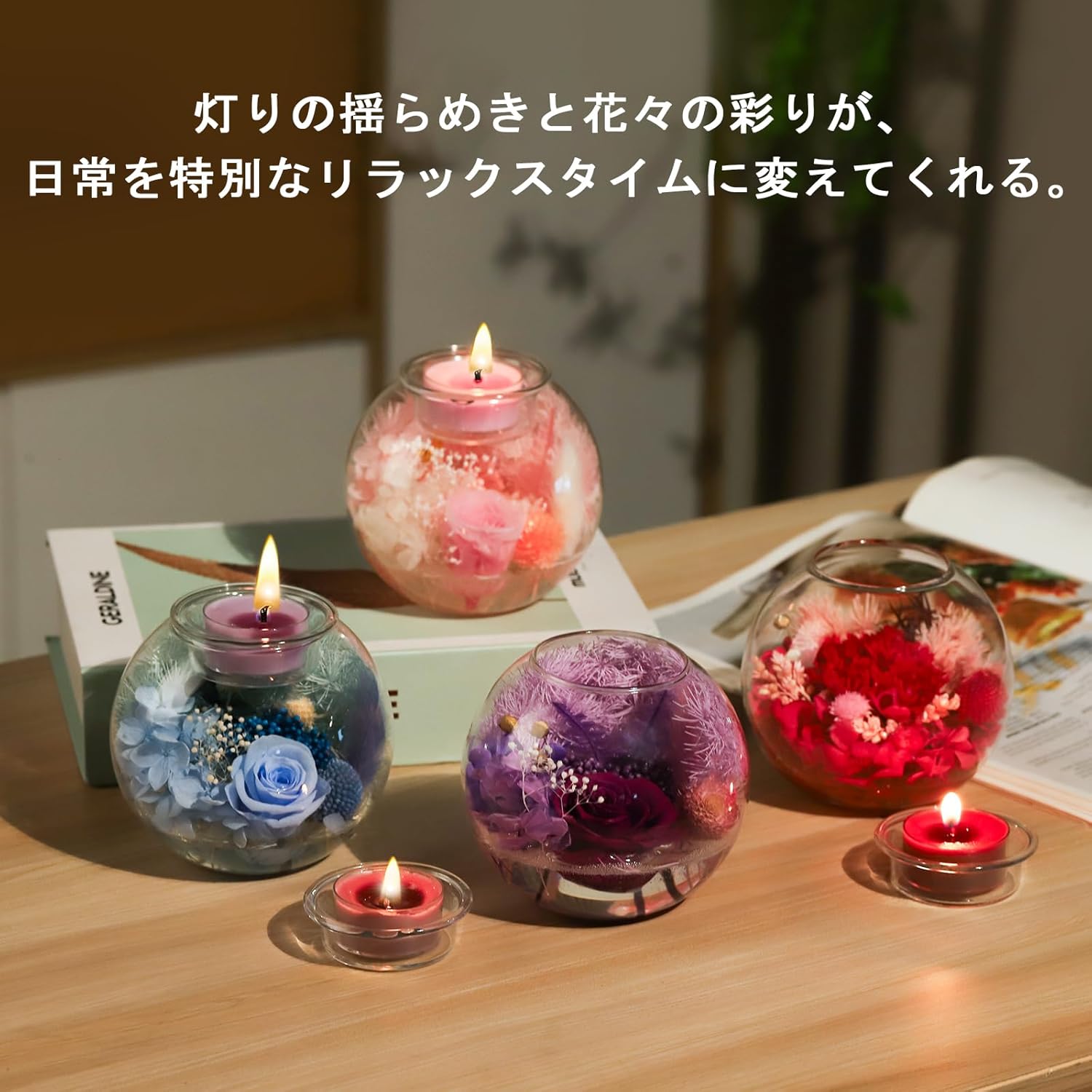 プリザーブドフラワーを詰め込んだまんまるかわいらしい形の金魚鉢型キャンドルスタンドは、母親や祖母、同僚、同僚、パートナーへの贈り物として最適です。 特別な誕生日や記念日、母の日などのシーンにふさわしく、受け取る方に温かい想いを伝えます。