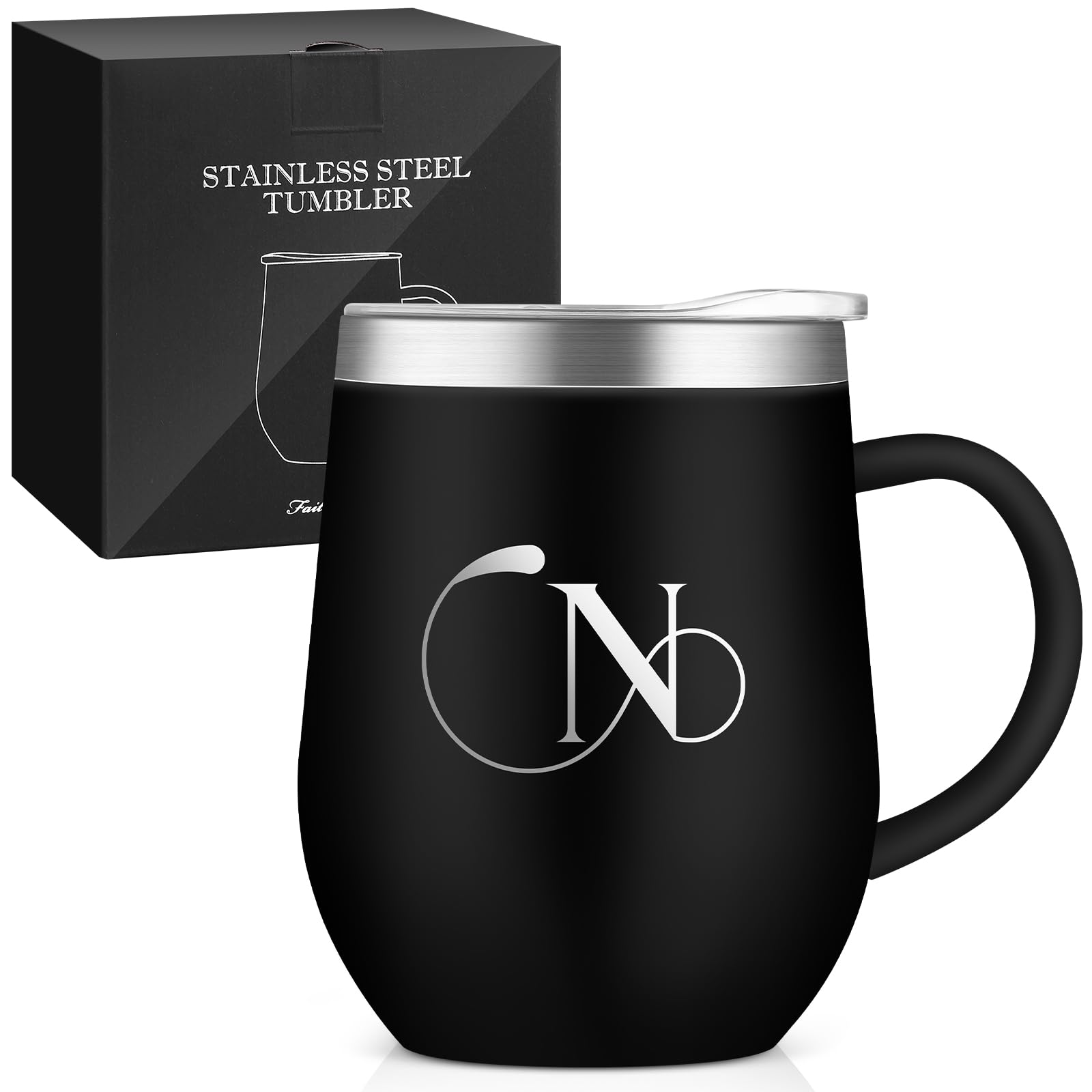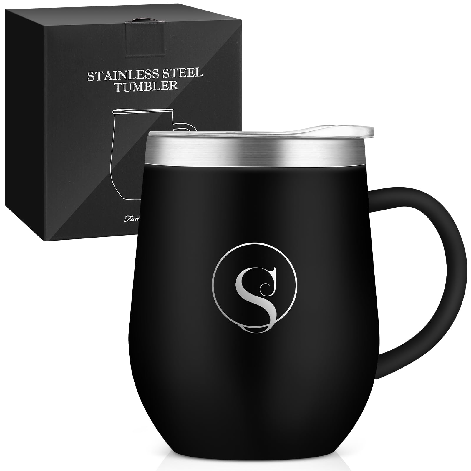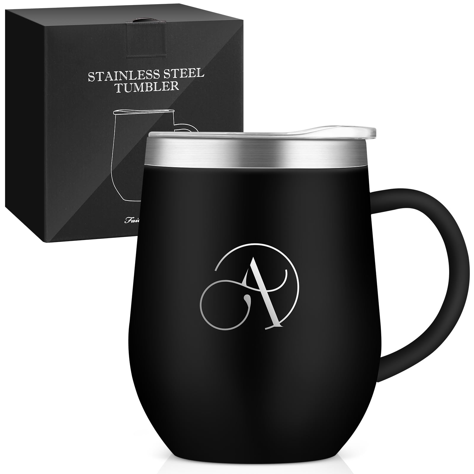 名前 イニシャル入り 誕生日プレゼント 取っ手付きタンブラー  女性 男性 ギフト ステンレス製 コーヒマグカップ 蓋付き 保温保冷 350ml 化粧箱入り 母の日 父の日 恋人 姉妹 友達 上司 父親 母親 プレゼント 就職 退職 還暦 記念日 クリスマス
